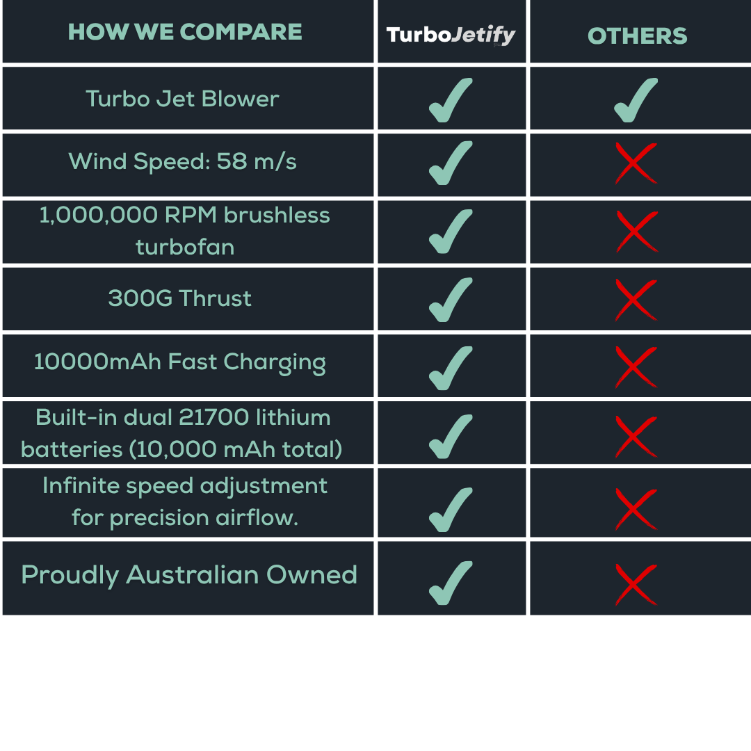 Meet the 1,000,000 RPM Brushless Turbo Jet Blower — engineered for raw thrust and relentless performance. With 300g of pure blowing force and a brushless turbofan motor, it cuts through dust, sand, and debris like nothing else on the market.